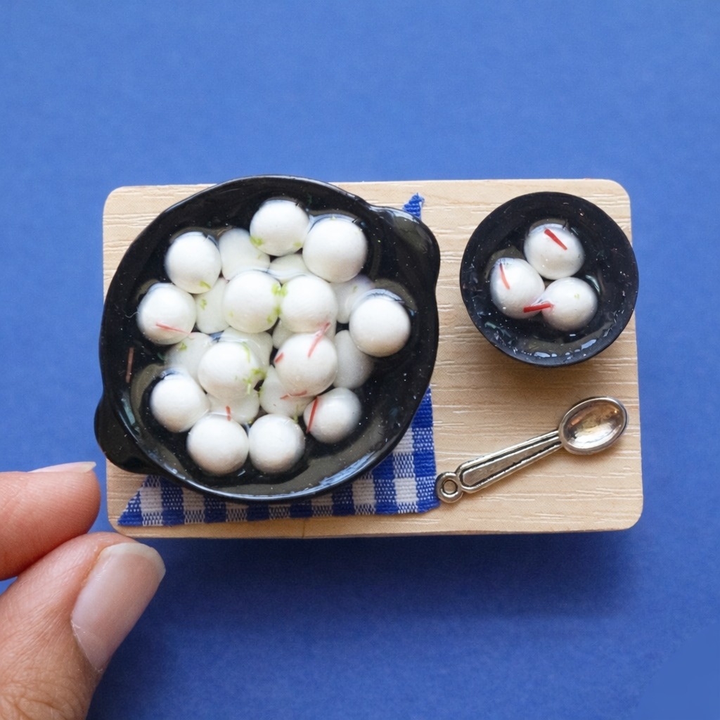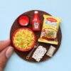 Here is a lovely treat for your eyes! This handmade miniature creation of cookie baking scene contains a tray of uncooked cookies, floral baking gloves, broken eggs, chocolate bar, butter, bowl of cookie batter, cooking book, a plate full of cooked cookies and knife which looks absolutely stunning. Add on the sweet twist at your home by owning this lovely creation which is awaiting to make you drool over it.