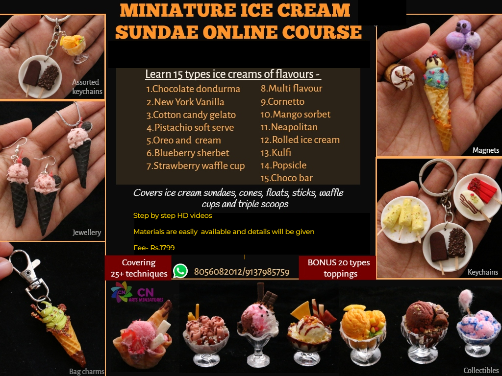 ONLINE CLAY MINIATURE ICE CREAM ONLINE COURSE + lifetime access to the recording- English