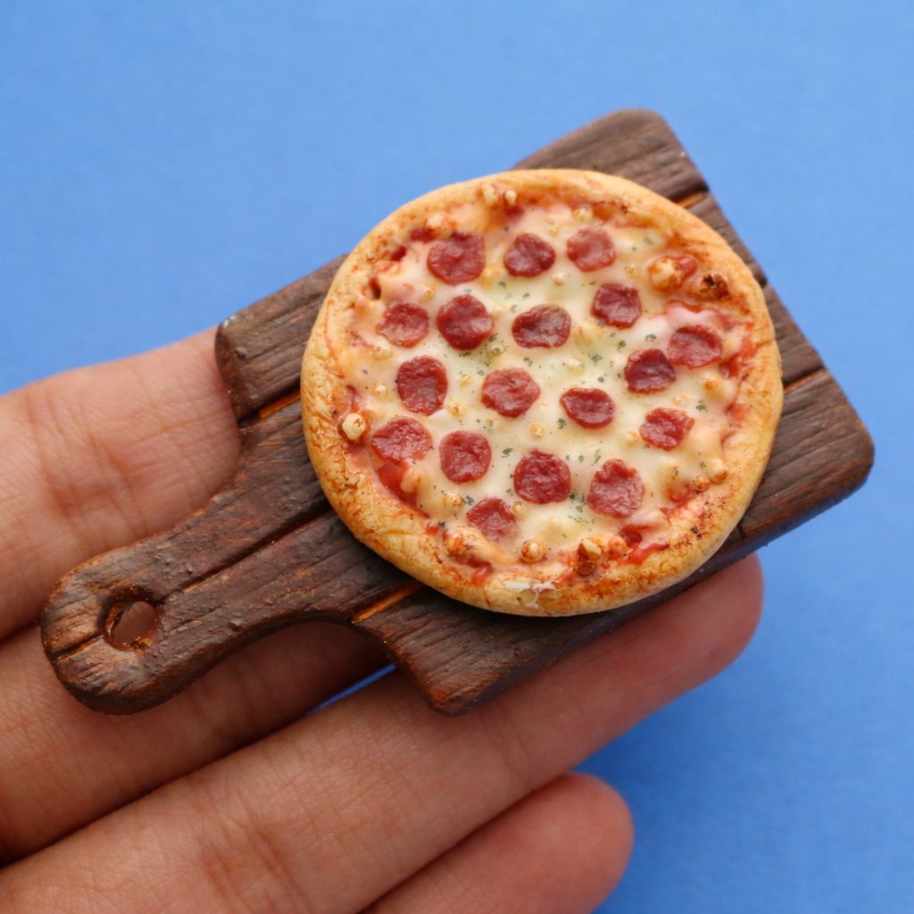 This stunning miniature magnet showcases exquisite uthappams topped with colorful veggies, served with cute bowls of sambar and coconut chutney—a tribute to tasty South Indian cuisine. Every handmade detail shines, making it an amazing gift or unique home decor.